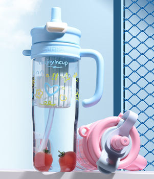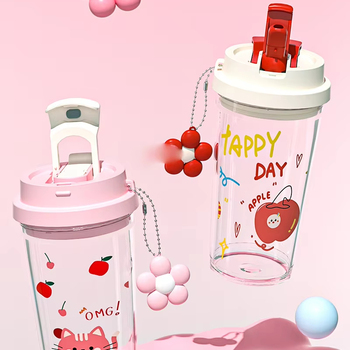 ידית תה גביע פלסטיק כוסות מים באיכות גבוהה מראה קש אופקיות מתאים לתלמידים